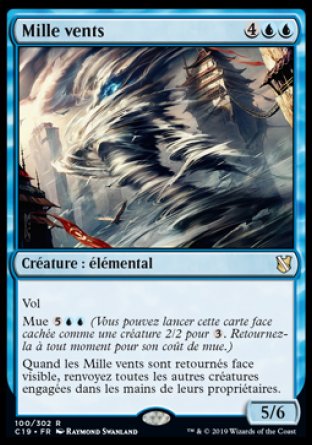 Quand les Mille vents sont retournés face visible, renvoyez toutes les autres créatures engagées dans les mains de leurs propriétaires.