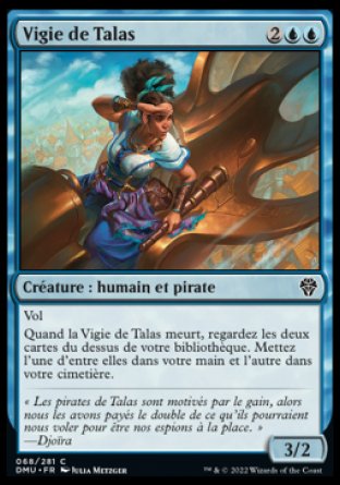Quand la Vigie de Talas meurt, regardez les deux cartes du dessus de votre bibliothèque. Mettez l'une d'entre elles dans votre main et l'autre dans votre cimetière.