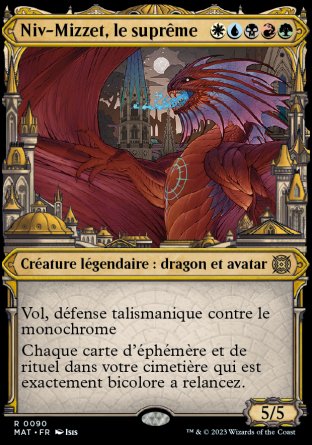 Chaque carte d'éphémère et de rituel dans votre cimetière qui est exactement bicolore a relancez (Vous pouvez lancer cette carte depuis votre cimetière en vous défaussant d'une carte en plus de payer ses autres coûts. Puis exilez cette carte.).