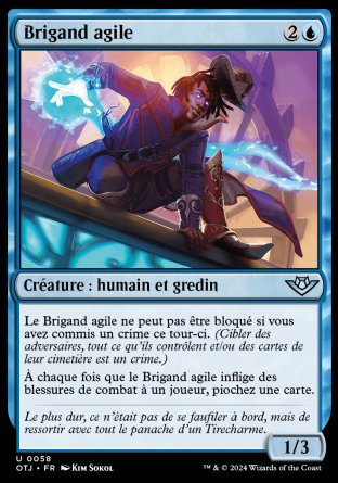 Le Brigand agile ne peut pas être bloqué si vous avez commis un crime (Cibler des adversaires, quoi que ce soit qu'ils contrôlent et/ou des cartes dans leurs cimetières est un crime.) ce tour-ci.