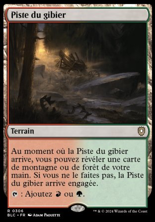 Au moment où ce terrain arrive, vous pouvez révéler une carte de montagne ou de forêt de votre main. Si vous ne le faites pas, ce terrain arrive engagé.