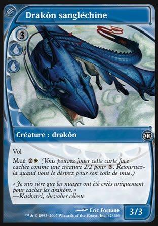 Vol (Cette créature ne peut être bloquée que par des créatures avec le vol ou la portée.)Mue (Vous pouvez lancer cette carte face cachée comme une créature 2/2 pour . Retournez-la quand vous le désirez pour son coût de mue.)