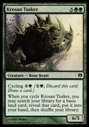 La carte Greater Tanuki est une référence à Krosan Tusker de par ses force et endurance, ainsi que sa capacité permettant de rechercher un terrain de base dans sa bibliothèque pour un coût de ![]() ![]() Les cinq cartes Renewed Faith, Choking Tethers, Dirge of Dread, Solar Blast et Krosan Tusker, de l'édition Onslaught, forment un cycle. Ces cartes ont toutes une capacité déclenchée lorsque la carte est recyclée. La carte Warped Tusker est une référence à Krosan Tusker de par son nom, sa valeur de mana, ses types de créature, ses capacités et son illustration ; elle en est une version Eldrazi.