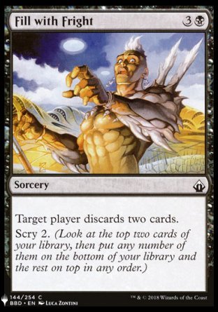 Target player discards two cards. Scry 2 (Look at the top two cards of your library, then put any number of them on the bottom of your library and the rest on top in any order.).