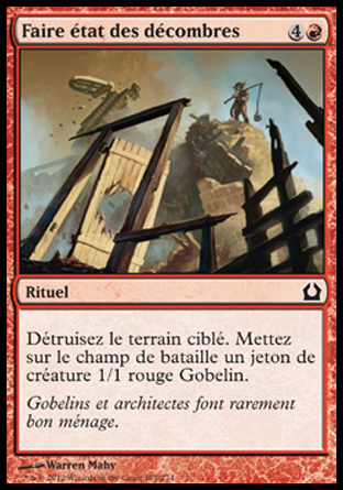 Détruisez le terrain ciblé. Créez un jeton de créature 1/1 rouge Gobelin.