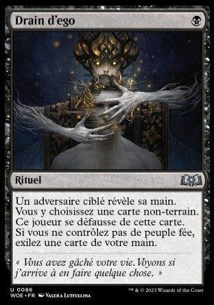 Un adversaire ciblé révèle sa main. Vous y choisissez une carte non-terrain. Ce joueur se défausse de cette carte. Si vous vous ne contrôlez pas de peuple fée, exilez une carte de votre main.