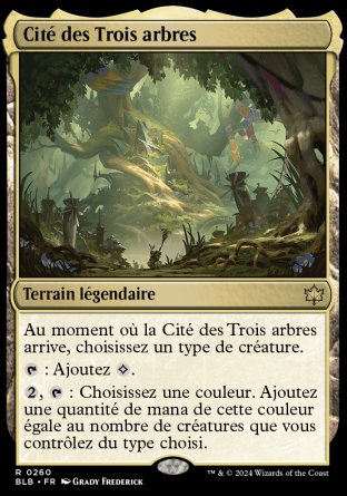 Au moment où la Cité des Trois arbres arrive, choisissez un type de créature.