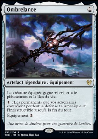 Équipement (: Attachez à la créature ciblée que vous contrôlez. N'équipez que lorsque vous pourriez lancer un rituel. Cette carte arrive détachée et elle reste sur le champ de bataille si la créature le quitte.)